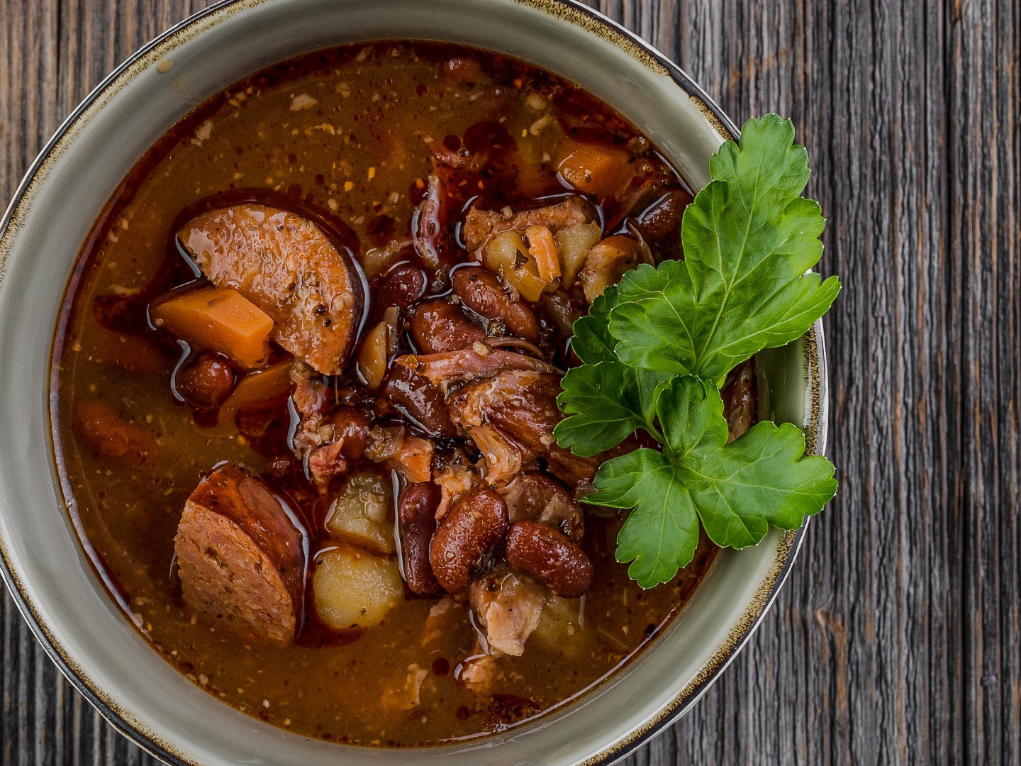 800g domáca krúpová hurka,  400g sous vide cesnakový bravčový bôčik, 800g mix domácich klobás (hovädzia, čípoš maďarská, domáca), 1kg restovaná kyslá kapusta, 1kg pečené baby zemiaky so šupkou, 200g nakladaná zelenina, 120g horčica, 120g chren